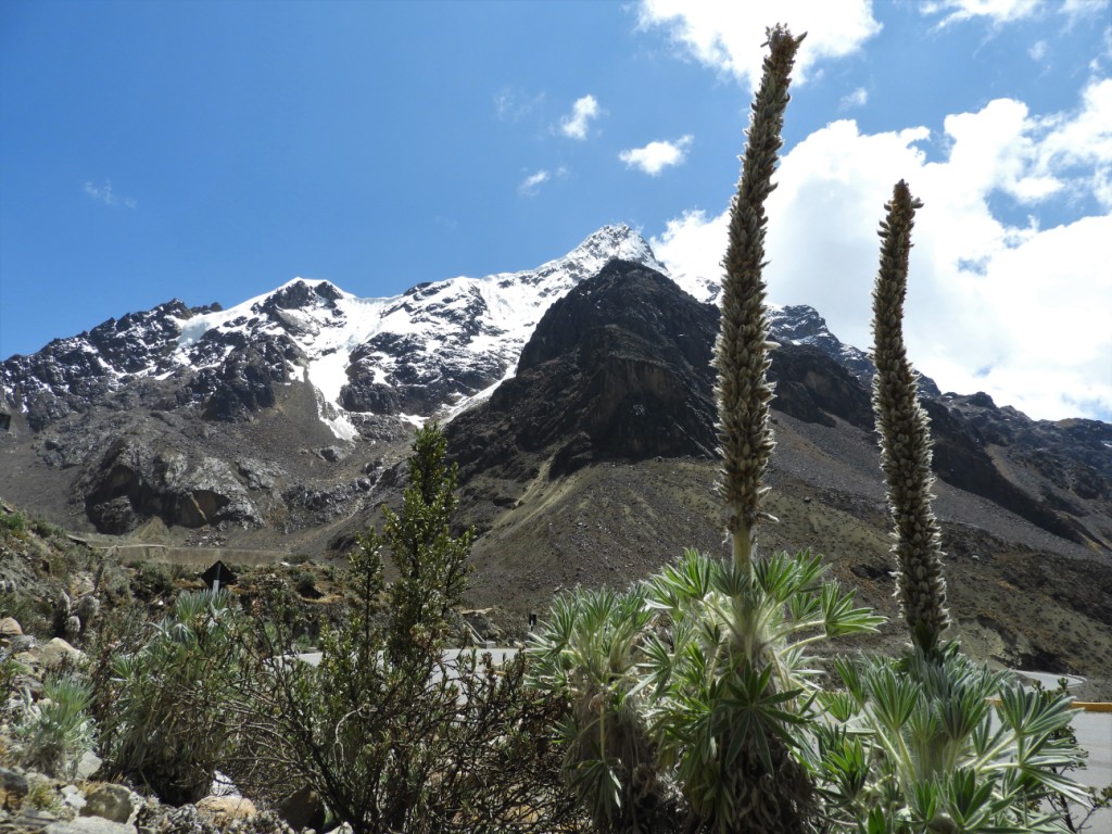 Nous atteignons le petit village de Caraz lové au pied de la cordillera blanca, une immense chaîne de pics aux neiges éternelles, dont 35 sommets atteignent plus de 6000m d’altitude ! Nous nous enfonçons sur une piste défoncée pour atteindre le tout petit lac de Miramar et découvrir là un minuscule hameau de maisons d’adobe où la vie traditionnelle s’écoule lentement. Un véritable plongeon dans le temps…