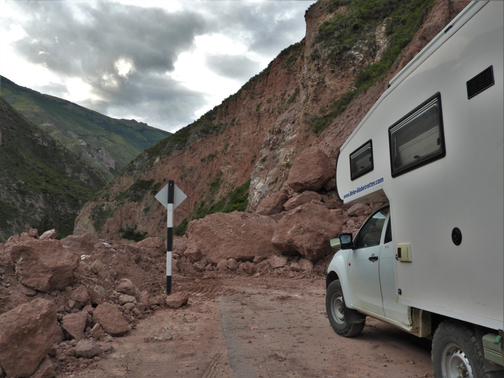 En cette fin de saison des pluies, nous assistons au résultat des intempéries qui ont frappé la région et les éboulis sont parfois impressionnants ! Par chance, les équipes d’entretien des routes qui travaillent d’arrache-pied à maintenir le bon état du réseau routier péruvien, ont déjà créé des voies de passage secondaires !