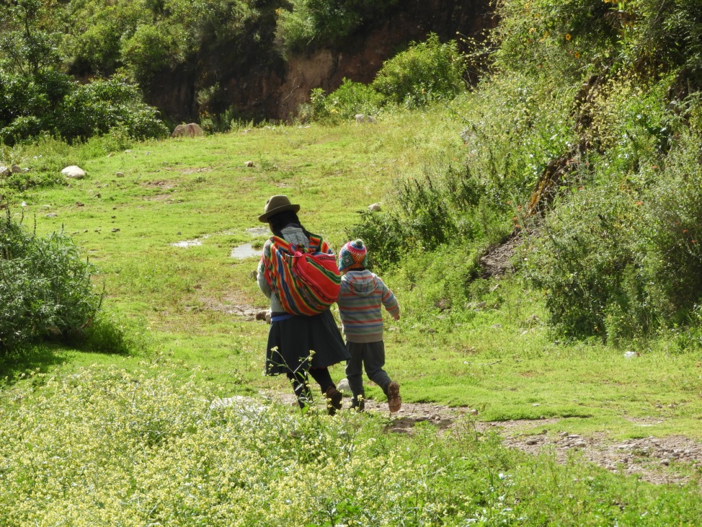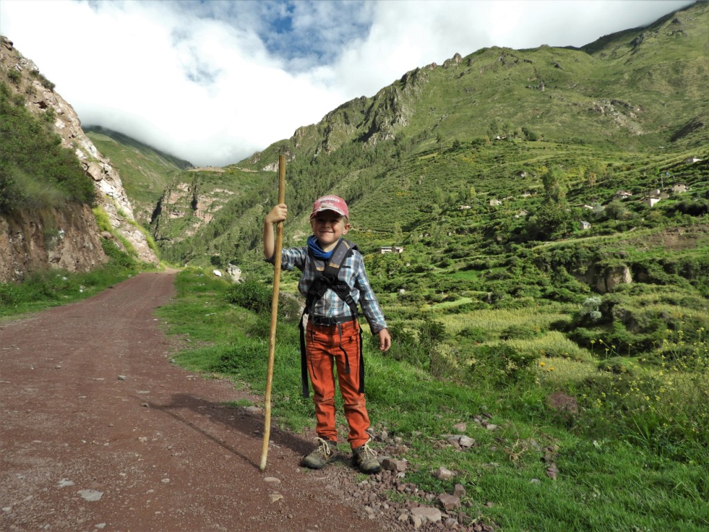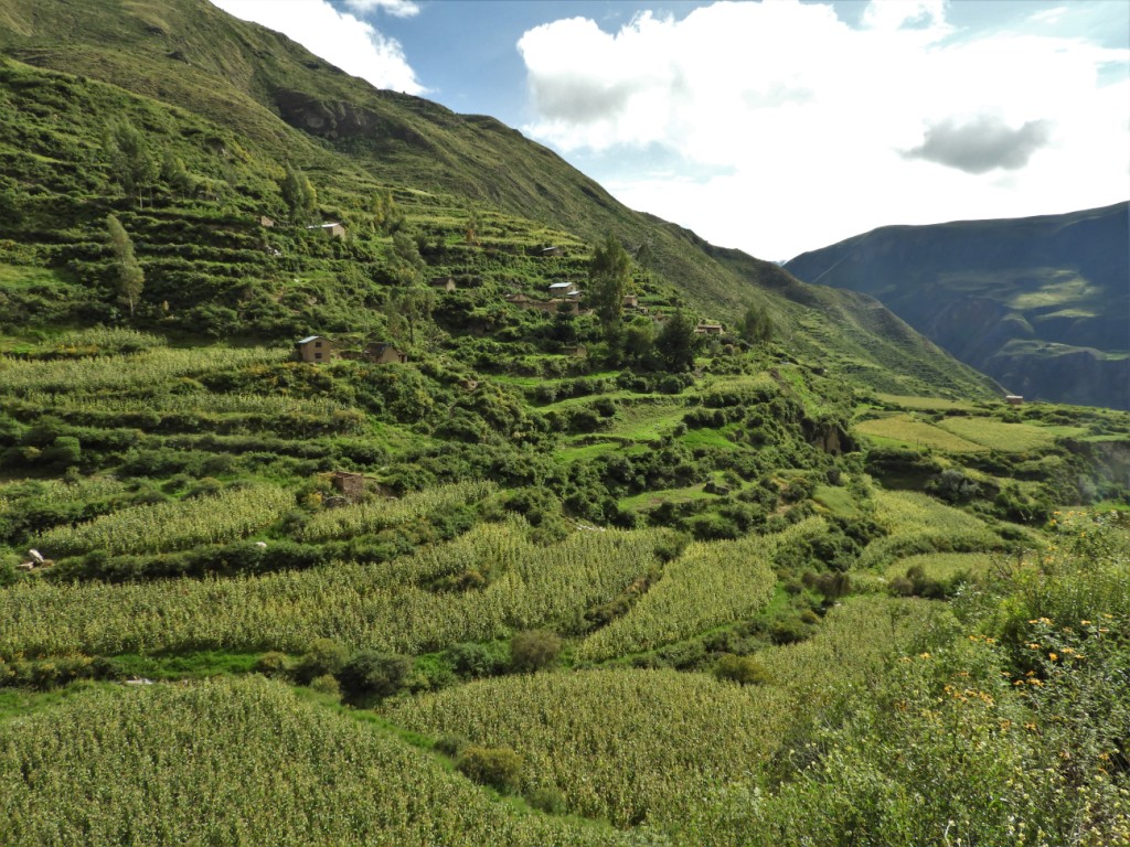 Les maisons étagées sur des terrasses flanquées de champs de champs de maïs offrent un paysage splendide ! Nous rencontrons des locaux qui vivent cachés derrière la montagne et parcourent quotidiennement des kilomètres et plus de 400m de dénivelé avant d’atteindre le premier colectivo (transport en commun local) qui les conduira à la ville pour se fournir ce qu’ils ne produisent pas. Et c’est la manta (tissu utilisé par les femmes pour transporter sur le dos les enfants ou toute autre charge) chargée de vivre, qu’ils ascensionneront le dénivelé pour rentrer à leur village…