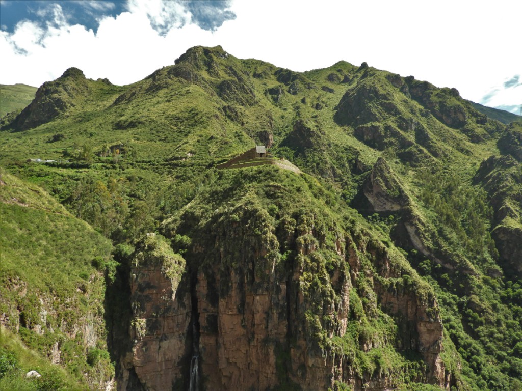 Après avoir atteint la cascade, nous décidons de pousser plus loin l’ascension pour aller admirer la forteresse Inca qui la surplombe. Perché sur son promontoire, ce poste de garde installé sur le chemin menant à Ollantaytambo offre une vue spectaculaire. Totalement ignoré des touristes, nous profitons seuls de la visite.