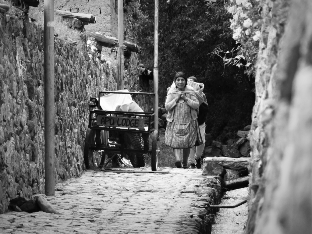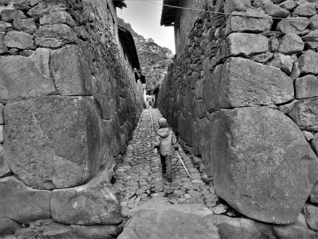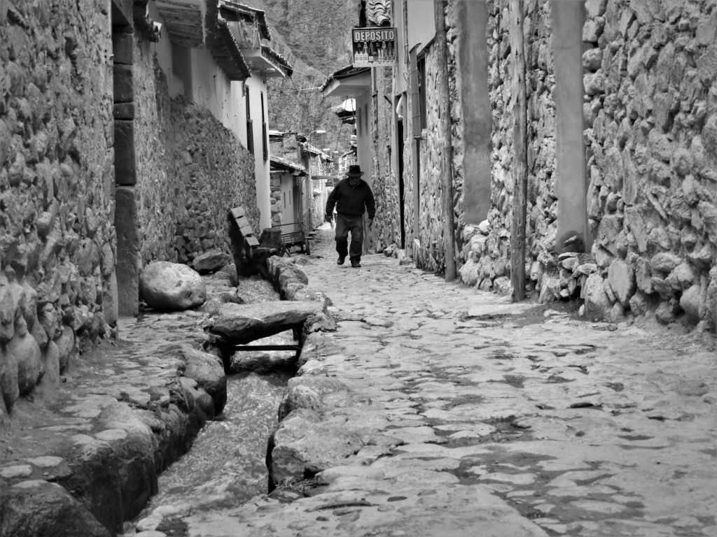 Nous atteignons la ville d’Ollantaytambo, début de la « vallée sacrée » longeant le fleuve Urubamba. Avec son plan d’urbanisme inca, ses canaux taillés dans le pavé de ruelles bordées de blocs colossaux, elle est la cité à avoir le mieux conservé ses origines précolombiennes. Ceci mêlé à l’architecture des maisons bâties par les espagnols après leur conquête donne un résultat absolument charmant !