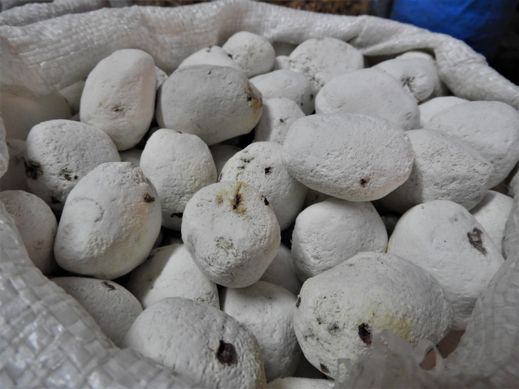 L’alimentation dans la sierra est basée essentiellement sur le maïs dont il existe de très nombreuses variétés et la pomme de terre (il y en aurait plus de 4000 variétés différentes au Pérou). Nous découvrons ces drôles de boules blanches qui s’avèrent être des morayas, des pommes de terre placées dans la glace des nevados et déshydratées par le soleil pour les conserver.