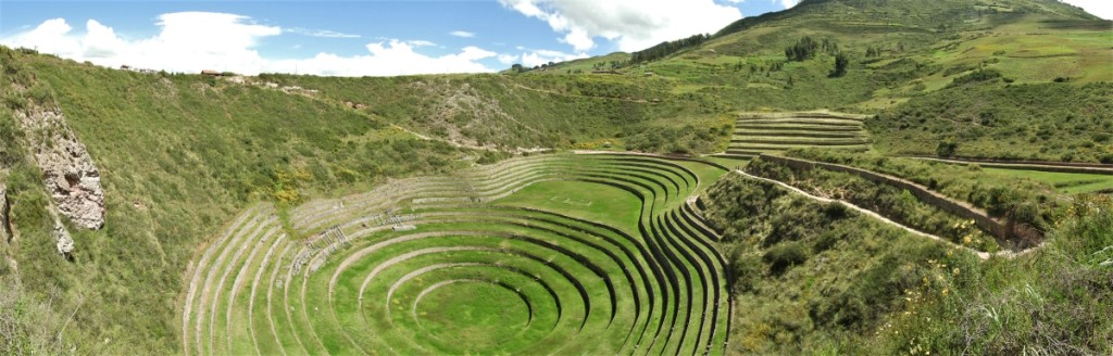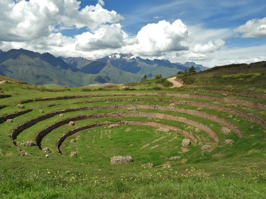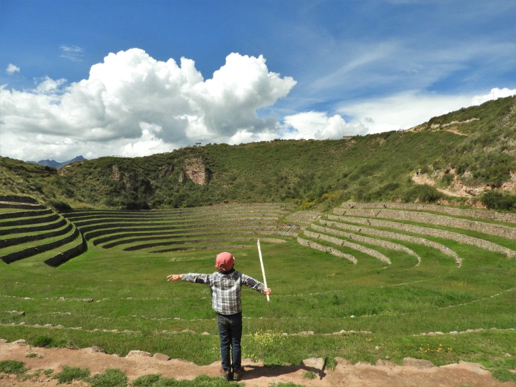 Nous quittons cette jolie cité pour nous diriger vers l’arrière-pays et grimper jusqu’à 3500m d’altitude pour atteindre les ruines de Moray. Ici, un étrange paysage s’offre à nous : ces terrasses construites en cercles concentriques servaient de centre de recherche agricole aux incas. Le positionnement des différentes terrasses permettaient de créer des microclimats propices à la culture de toute sorte de végétaux. Preuve de l’ingéniosité débordante de ces incas…