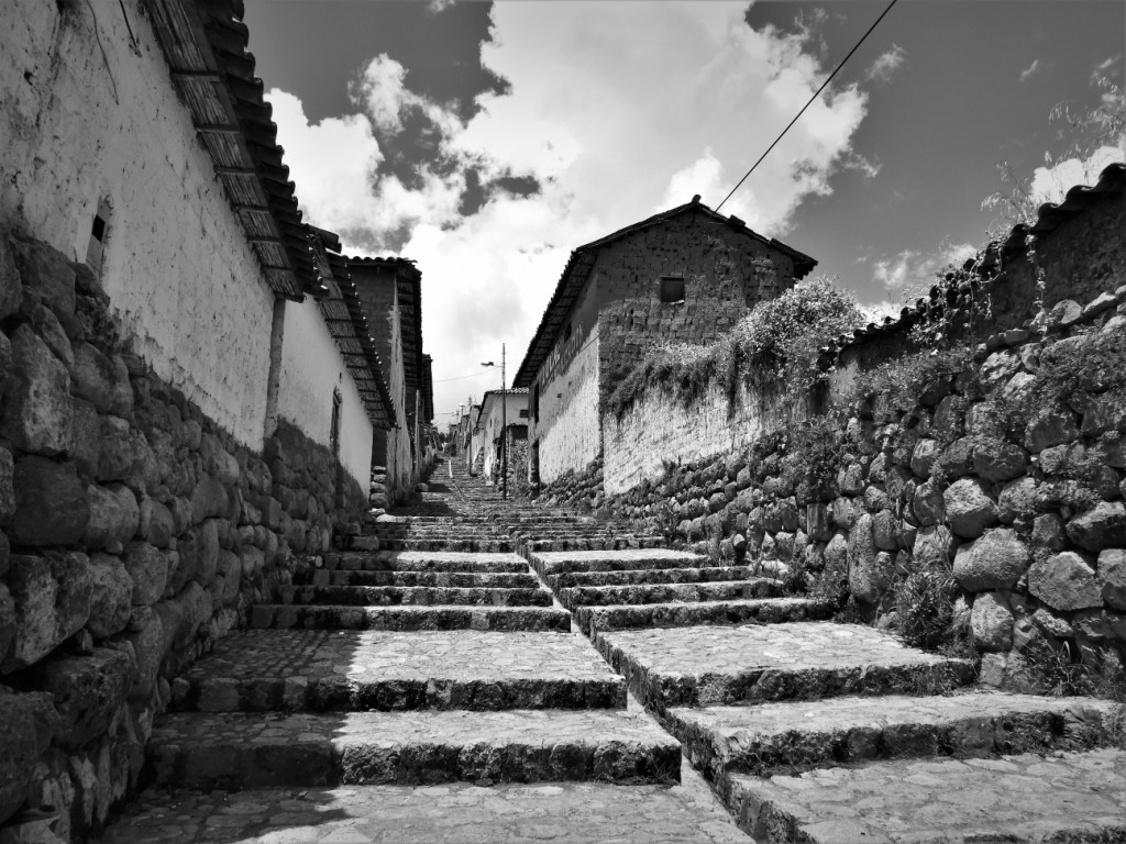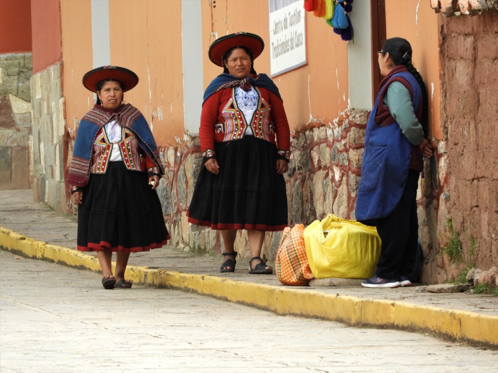 Dans ces ruelles en pente pavées et bordées de murs incas servant de soubassement aux maisons espagnoles blanchies à la chaux, nous croisons des habitants vêtus de leur tenue traditionnelle propre à chaque communauté.