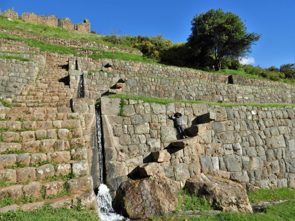 Nous avons le privilège de pouvoir nous installer pour la nuit au pied du site archéologique de Tipón, situé à 3400m d’altitude, au bout d’une route à lacets. Cette gigantesque succession de terrasses irriguées, alimentées par une source naturelle est une des prouesses en génie civil des incas.