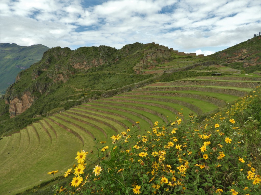Sur la montagne située en face, nous partons à l’ascension des terrasses servant de soubassement à une forteresse grandiose, point de contrôle entre Cusco, la capitale Inca et le Machu Picchu, résidence de l’empereur Pachacútec et sanctuaire religieux de grande importance. Le lieu fût le siège d’une grande bataille entre incas et conquistadors, accueillis à coup de flèches et de lances.