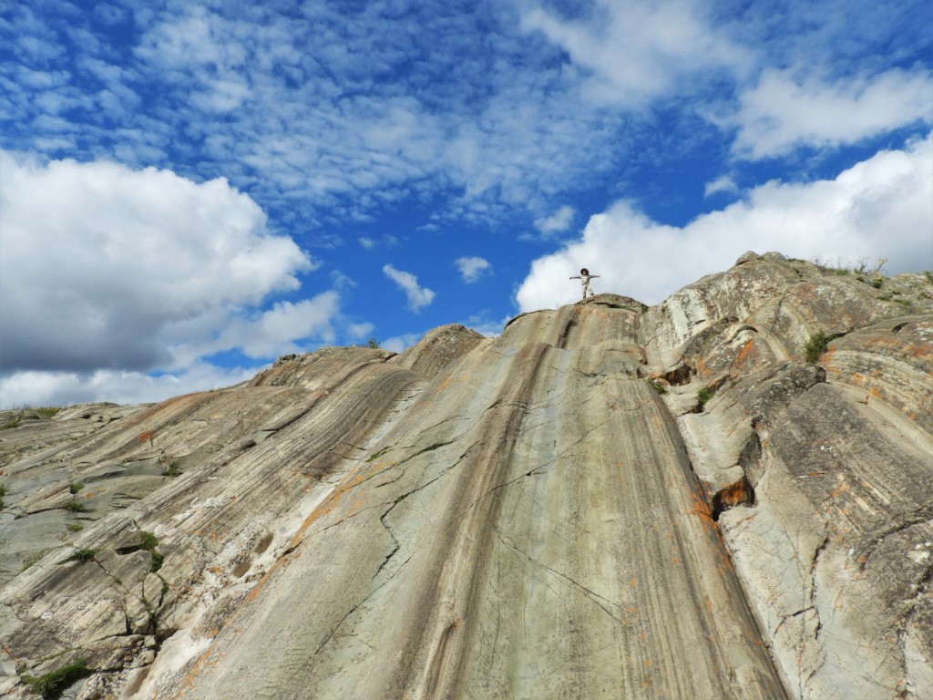 Une curiosité géologique s’offre au visiteur au milieu de ce paysage de ruines : un affleurement rocheux ayant pris la forme d’un toboggan géant que Léon se fait un plaisir de dévaler !